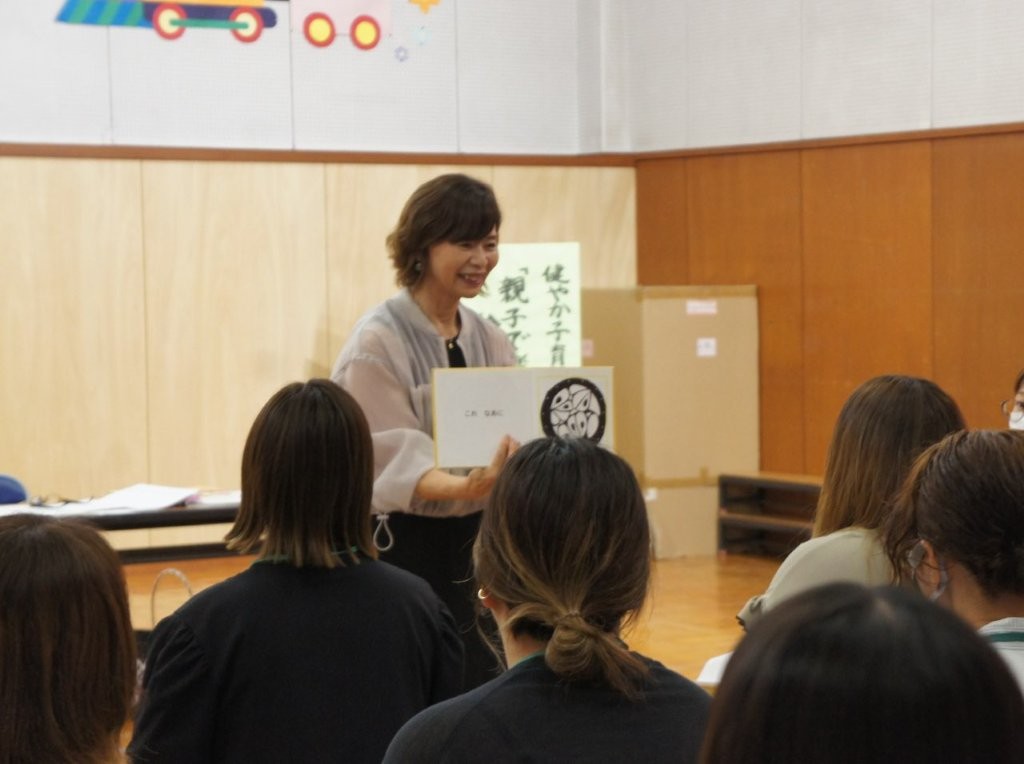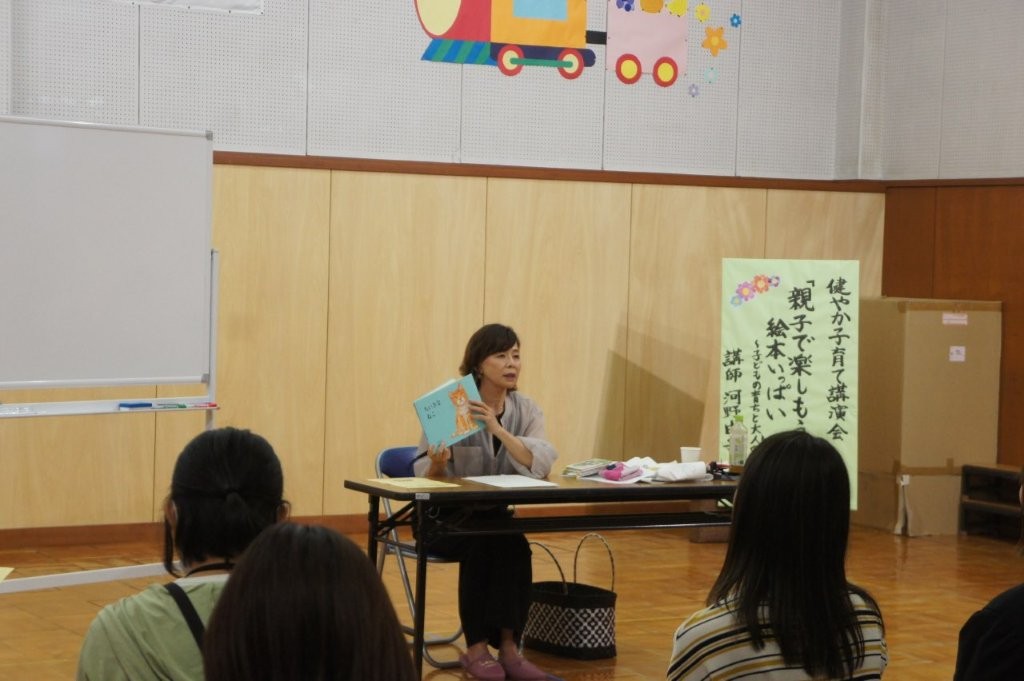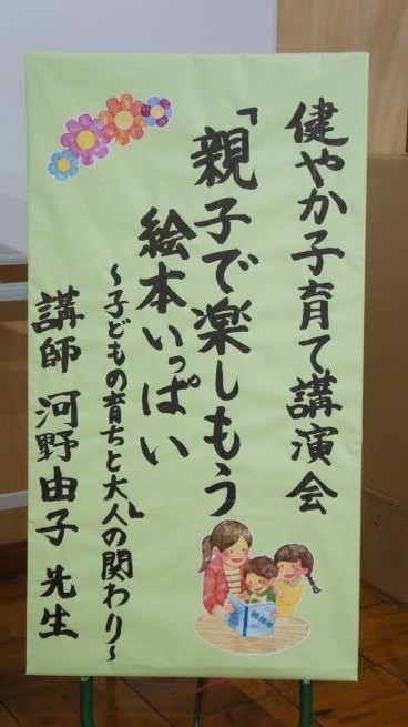 講演会では、メディア漬けの今の時代に生きる子どもたちにとって、絵本がいかに大切なのかを話してくださり、絵本の選び方や読み方を教えていただきました。