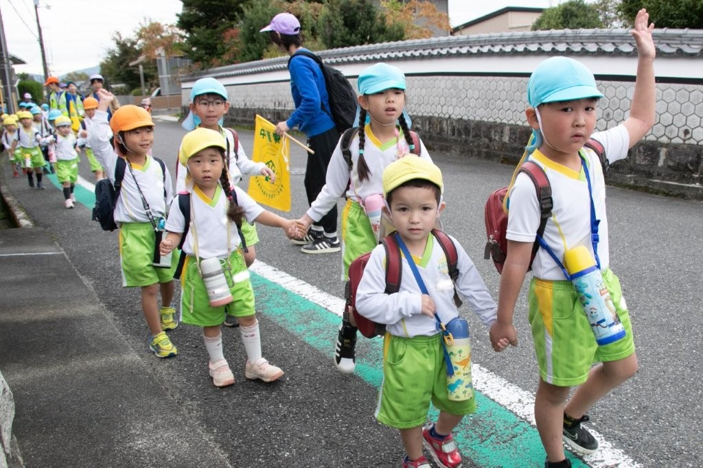 小さい組さんも真ん中組さんや大きい組さんと手を繋ぐことで、頑張って歩くことができました。
