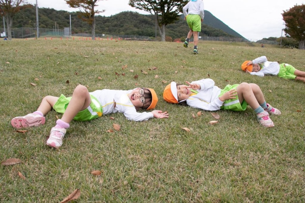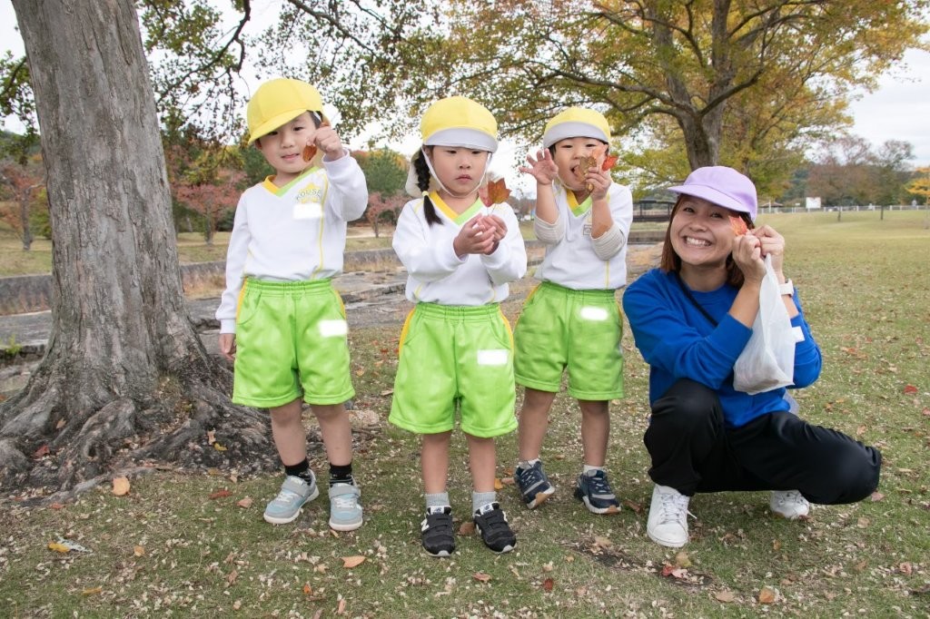 現地では、鬼ごっこをしたり秋の自然物探しをしたりして、