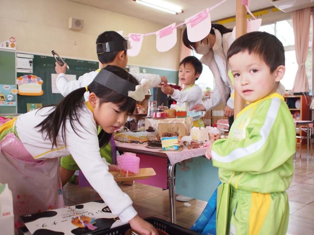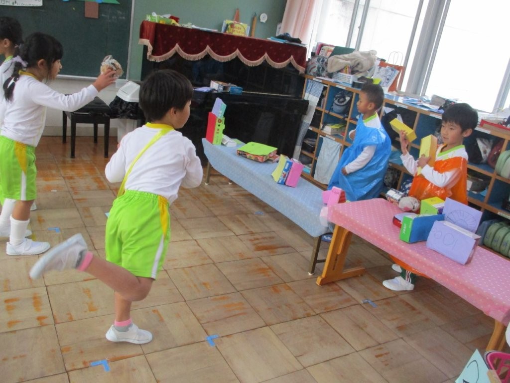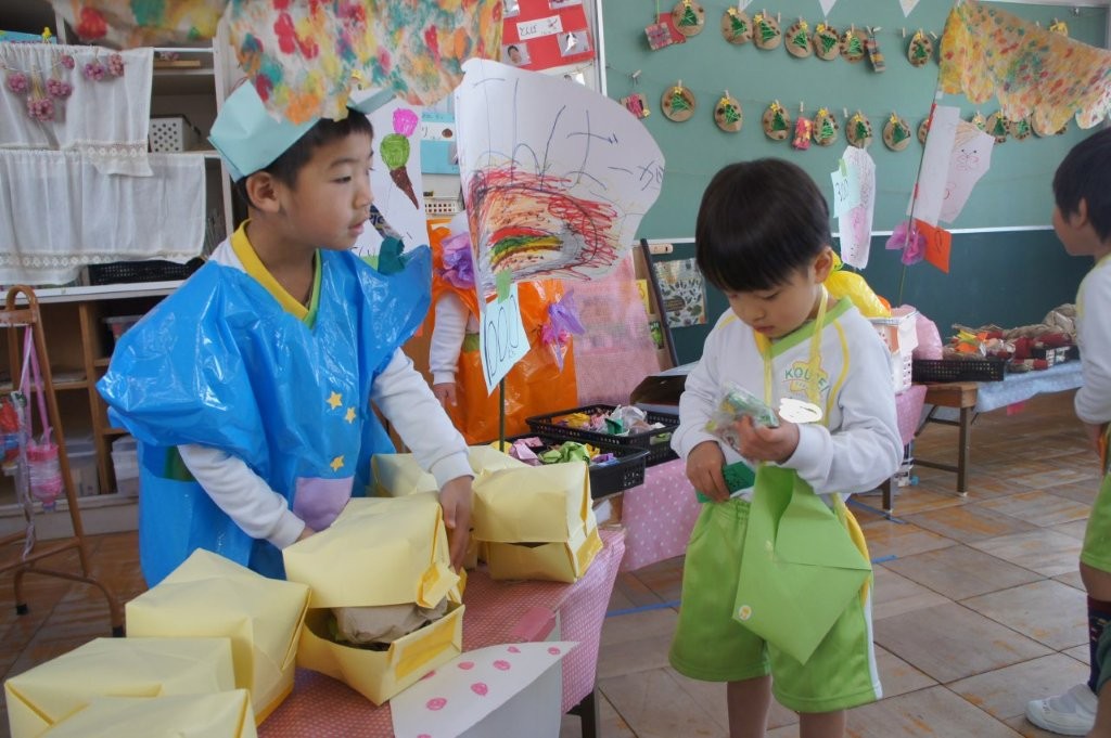 お店屋さんごっこを通して、「これください」と友だちに思いを伝えたり、