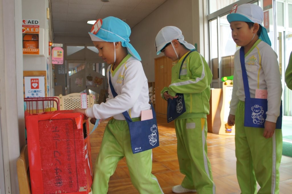 大きい組さんが郵便屋さんになり、各クラスに郵便はがきを届けてくれています。