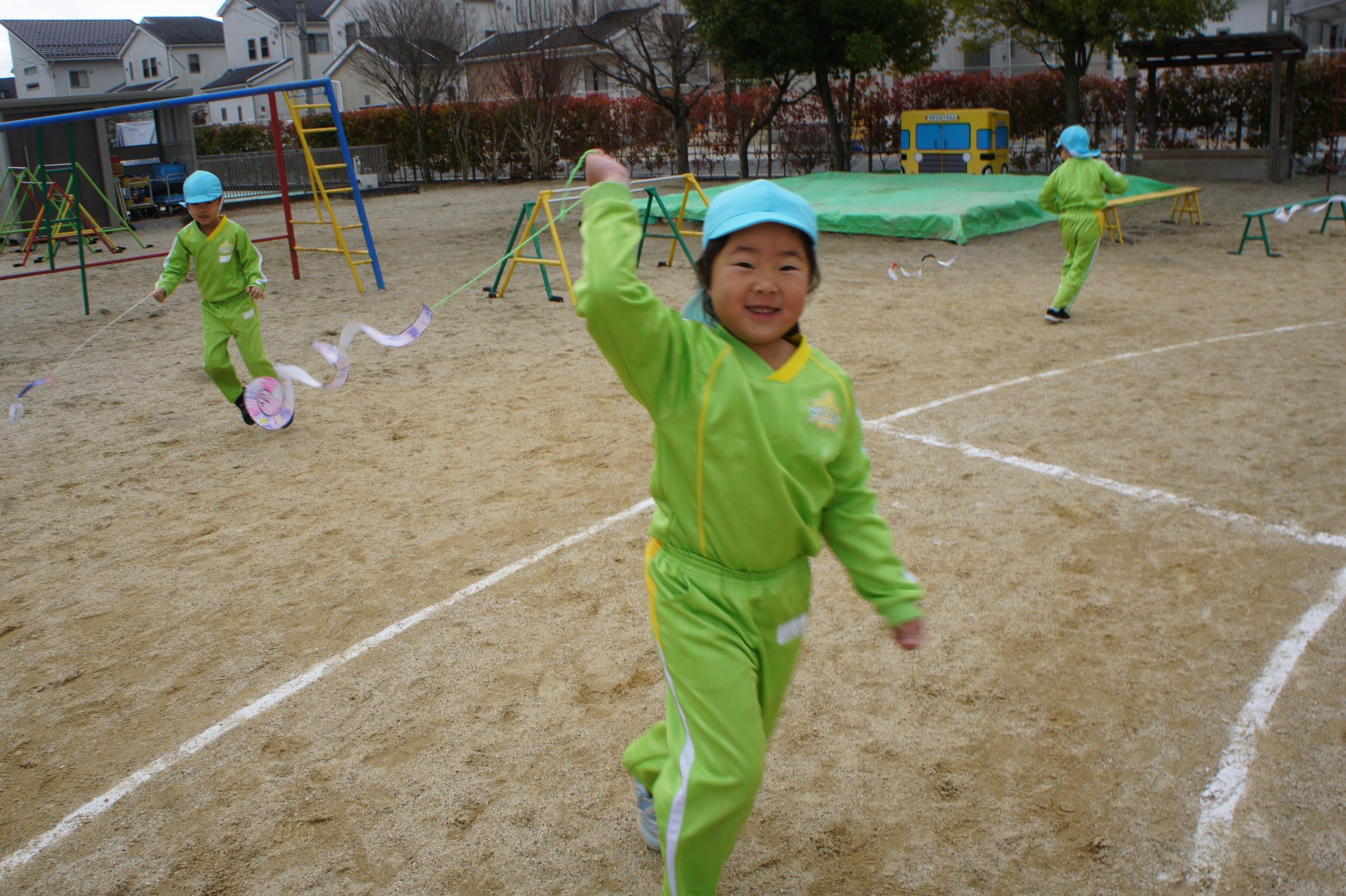 こまやかるた、だるま落とし、凧揚げなど、友だちと一緒に、夢中になって遊んでいます♡