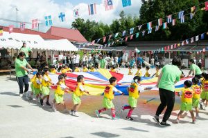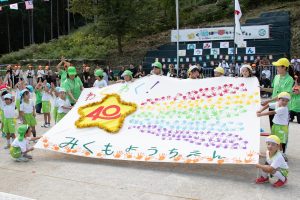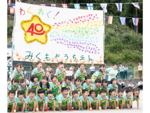 三雲幼稚園創立40周年を記念してみんなの手形を押して旗を作ったよ!