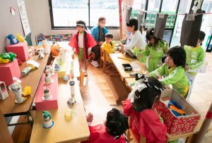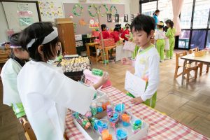 各クラスで、たくさんのお店がオープンすると同時に「いらっしゃいませ~!!」と