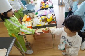 開店の時間になると「いらっしゃいませ~!」と大きな声が水戸幼稚園に響き渡っていました!