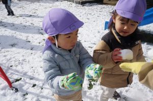 園庭にはうっすらと雪が積もっており、すぐに雪遊びへ!