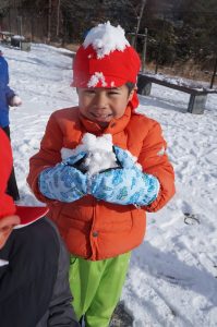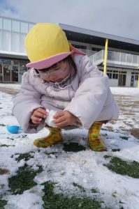 作った雪玉を大事そうに持ち歩き、先生に嬉しそうに見せに行く姿も印象的でした✨