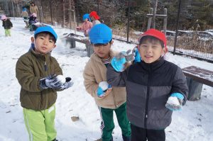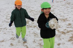 大きいクラスの子どもたちは、雪の中を駆け回ったり、先生対子どもで雪合戦をしたり、大きな雪玉を一生懸命に作ったり…ダイナミックに遊びを楽しんでいました!